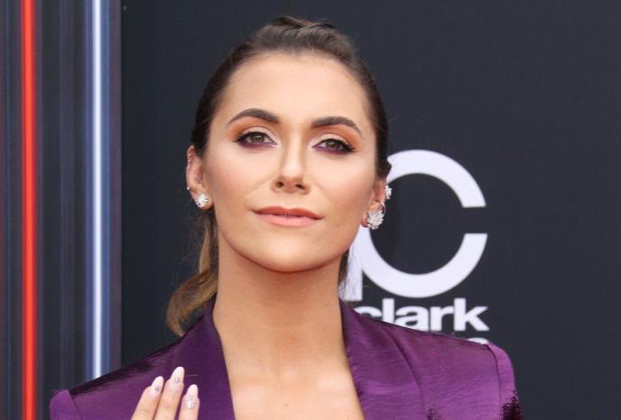 Alison Stoner u ljubičastom odelu bez grudnjaka