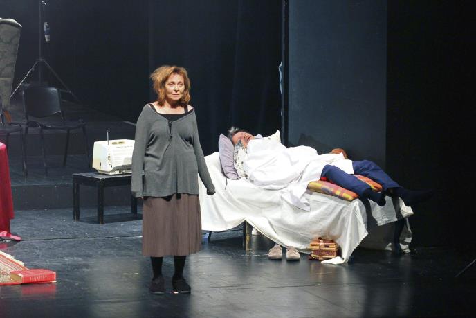 - Šta će tebi psihijatar? Vidi mene, imam skoro 70 godina i nikad nisam imala psihičkih problema - povišenim tonom joj kaže majka Bogdanka (Seka Sablić), na šta joj druga ćerka Nadežda (Anita Mančić), stojeći u uglu proscenijuma, posebnim tonom veli: "Mama, imaš 72".