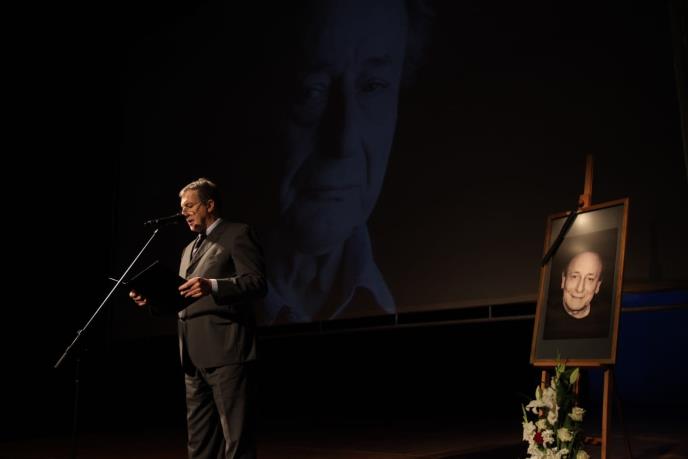 Dejan Savić je zamolio prisutne da minutom ćutanja odaju počast jednom od najvećih glumaca Narodnog pozorišta, a zatim podsetio na bogatu glumačku karijeru velikog Pece Ejdusa: