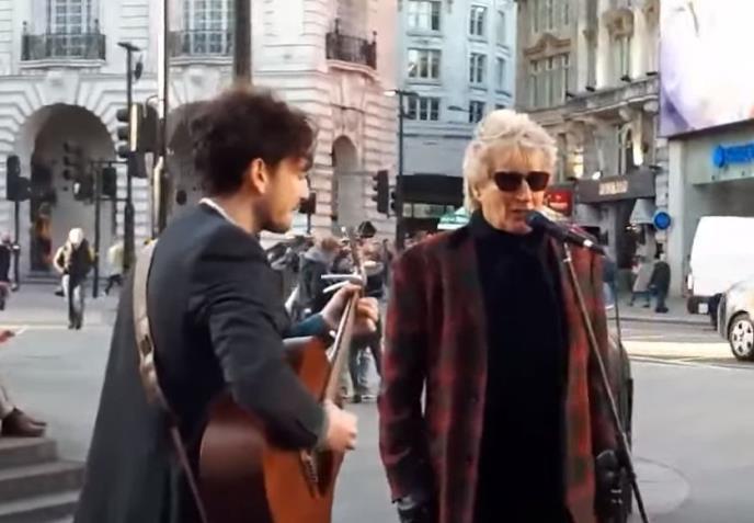 Rod Stjuart, na iznenađenje brojnih prolaznika, pridružio se uličnom sviraču Henriju Fejsiju i zapevao poznatu "Handbags and Gladrags". Fanovi su se polako skupljali oko njih, a mladić zajedno sa zvezdom uživao je do daske! Ovo je svakako jedna od onih situacija koje se dese jednom, pa ko zna kad opet.