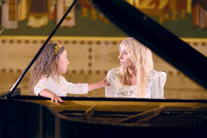 Pre ručka lomi se česnica i izgovara molitva Očenaš, a zatim se peva pesma. U spotu se pojavljuje simbolično s krunicom na glavi i mala princeza Petra, objasnila je pijanistkinja.