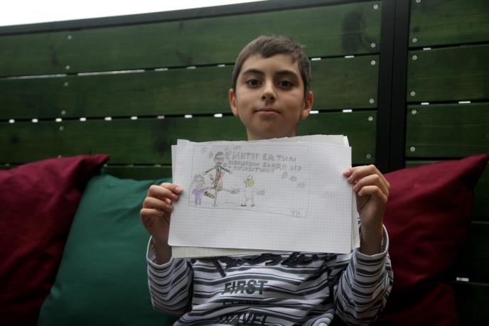 "Oduševljena sam crtežima zato što on to stvarno prati, nije klasično dete u tom smislu, mnogo toga upija i razume, da mi ostali nismo ni svesni. Moji roditelji vole predsednika, pa nam je politika nekako stalno na televizoru, u novinama, stalno se o tome priča. Stefan tako vidi svet", kaže ponosna majka.