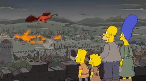 Naime, u epizodi iz 2017. godine Bart, Lisa, Homer i Mardž gledaju kako zmaj uništava njihovo selo.