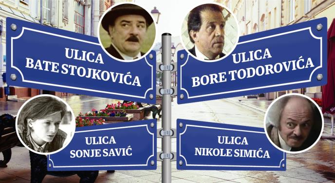 Dvadesetak ulica u Beogradu dobilo je nazive po velikanima srpske kulture i glumišta Bati Stojkoviću, Bori Todoroviću, Sonji Savić, Vlastimiru Đuzi Stojiljkoviću, Nikoli Simiću, Peri Kralju, Radetu Markoviću, Miodragu Paviću, Svetlani Velmar Janković, Radmili Savićević, Ružici Sokić i Mariji Crnobori.