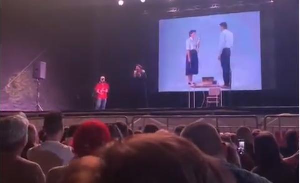 Umetnica je održala javno predavanje, a hiljade ljudi okupljenih na Ušću, došli su kako bi slušali o njenom radu, životu i načinu stvaranja performansa, a u jednom trenutku su i sami učestvovali u performansu. Svi su glasno urlali, a priključila im se i sama Marina Abramović.