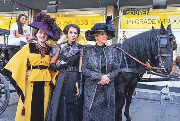 Knez Mihailovom ulicom juče su prolazile kočije s konjima, šetale su se dame i gospoda u raskošnim kostimima, a prolaznici su bili preneseni u Beograd iz perioda 1909-1915. godine.