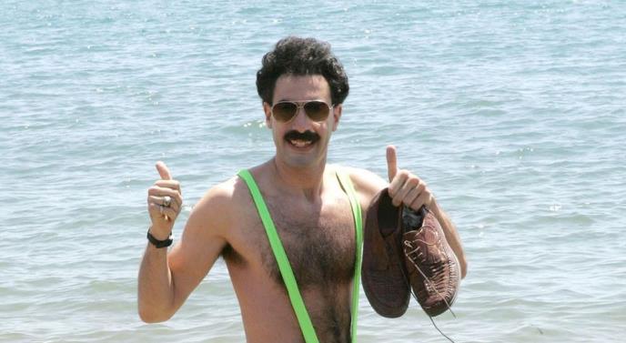 KomičarSaša Baron Koen najpoznatiji je po ulozi Borata, a jedna od najzapaženijih scena svakako je ona u kojoj se šeta u monokiniju.