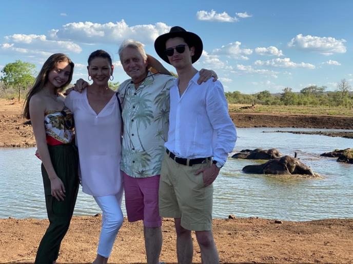 Pored supruga Majkl Daglasa (75), sa njima su i njihova deca Dilan Majkl (19) i Keris Zita (16). Brat i sestra odvojeni su zbog fakultetskih i drugih obveza pa su im ovi zajednički trenuci dragoceni.
