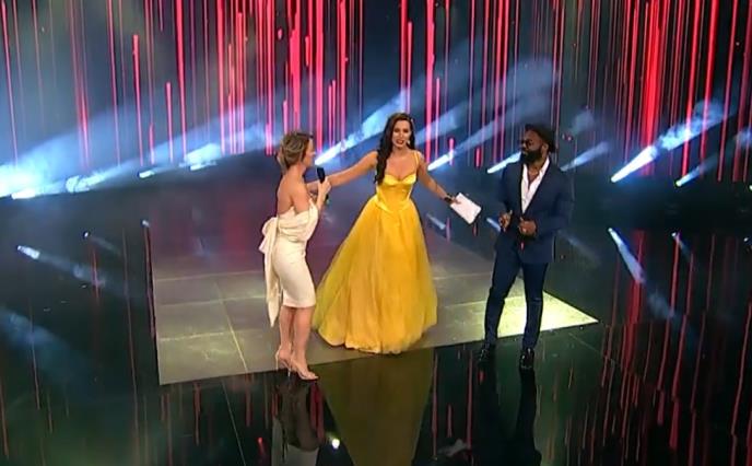 Voditeljka je izašla na scenu u žutoj haljini do poda, ali je imala veliki dekolte koji je privukao najveću pažnju.