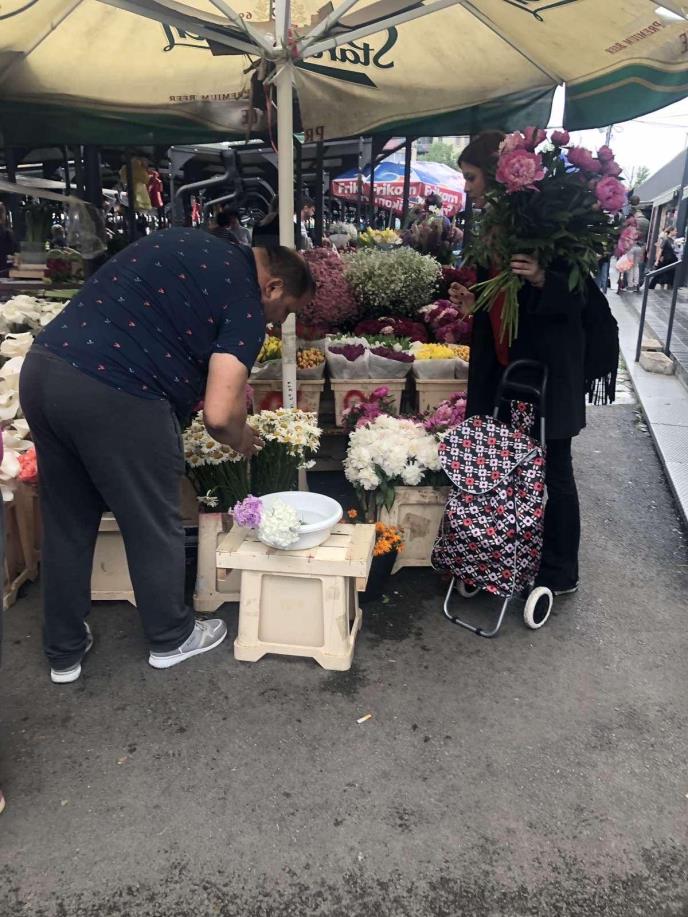 Ona je u opuštenom izdanju išla od tezge do tezge i kupovala namirnice za ručak. Nina se šalila i smejala sa prodavcima, a najduže se zadržala na tezgi gde se prodaje prirodno cveće.