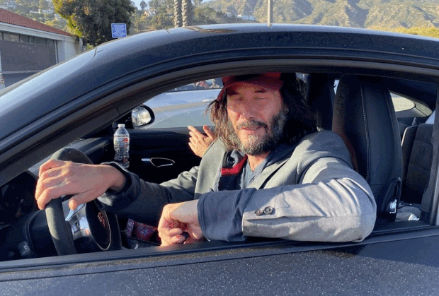 Glumac Kijanu Rivs bio je na putu do plaže, nasmešio se i pozdravio obožavaoce koji su ga zaustavili i fotografisali. Kažu da je "bio kul kao i uvek". A kada su pogledali ko sedi na mestu suvozača, videli su njegovu devojku i umetnicu Aleksandru Grant.