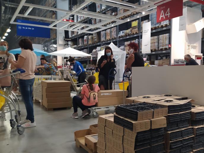 Nakon što su devojčice isprobale neke komade nameštaja namenjenog za učenje, otišle su do magacina, gde su uzele ono što im je potrebno.