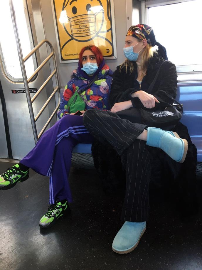 Ona je putovala metroom do Bruklina u Njujorku, nosila je šarenu trenerku i masku, pričala sa drugaricom, ali je u nekom trenutku i zaspala, što su američki paparaci iskoristili.