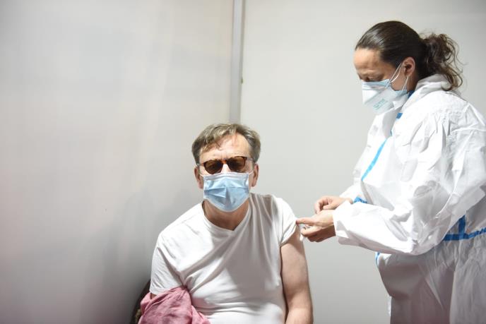 Dramski umetnici odazvali su se u velikom broju kako bi izvršli imunizaciju, a među njima je i gluac Tihomir Tika Stanić koji se jutros vakcinisao na beogradskom Sajmu.