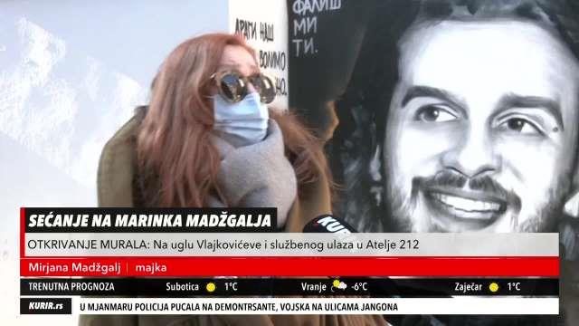 VOtkrivanju murala ispred Ateljea 212 prisustvovali roditelji Marinka Madžgalja i brojni prijatelji preminulog glumca, među koji asu bili Ognjen Amidžić, Andrija Milošević, Marko Kon, Tihomir Stanić... Majka Marija prvi put je progovorila za domaće medije posle smrti sina.