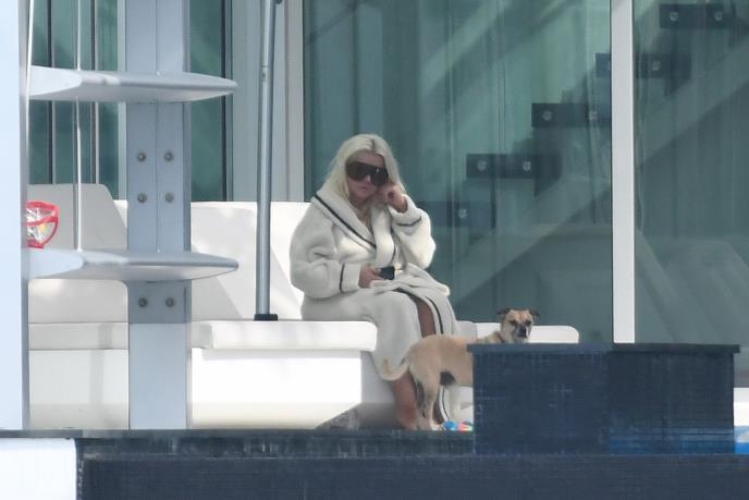 Zatim se presvukla u bade mantil. Fanovi su počeli da pričaju da se opet ugojila, a da su ove slike sa bazena najbolji pokazatelj.