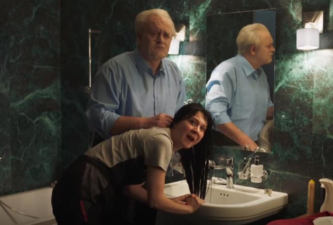 "Ovako je tebi taja prao kosu kada si bila mala", govori Sloba dok je Marija nagnuta na lababo i plače.