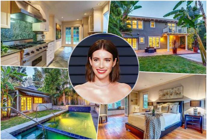 Novi glumičin dom je u kolonijalnom stilu, a smešten je iza visokih kapija i raznolikog zelenila koji garantuju privatnost u mirnoj ulici u Holivudu. Kuća datira iz ranih dvadesetih prošlog veka, a Ema je za nju iskeširala 3,2 miliona dolara prema pisanju stranih medija. Imanje se prostire na više od 2.500 kvadratnih metara, a vila koja je u središtu sadrži tri spavaće sobe i dva i po kupatila, uključujući glavni apartman na drugom spratu sa privatnom terasom i pogledom na dvorište. Odvojena garaža za dva automobila na imanju pretvorena je u kombinaciju pansiona i kućne kancelarije.