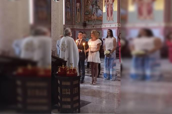 Sa njima su bili kumovi i ostali bliski ljudi, dok skladan par nije skrivao sreću zbog crkvenog venčanja, pa sve vreme nisu skidali osmehe sa lica.