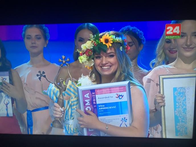 Irina Arsenijević predstavljala je Srbiju na nedavno održanom festivalu Slavjanski bazar u gradu Vitepsku u Belorusiji. U jakoj konkurenciji vokalnih solista iz 14 evropskih zemalja, mlada pevačica iz Šimanovaca je osvojila prvu nagradu, a pobrala je simpatije publike i žirija.