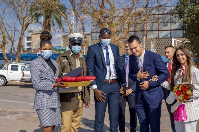 Njegov sin Aleksa sa svojom suprugom Nikolinom i najbližim saradnicima stigao je na ceremoniju u Lusaku, gde ga je primio gradonačelnik. Mladi umetnik i producent filma "Megdan" prethodno je preuzeo mornasku kapu, kao dar njegovih domaćina.