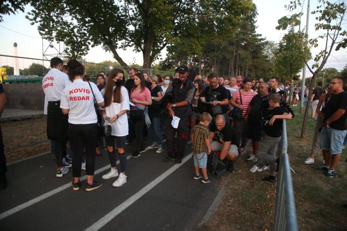 Naime, koncert grupe Tap 011 kasniće pola sata, zato što su privremeno na Ušću, na ulazu festivala otkazali čitači testova na korona virus.