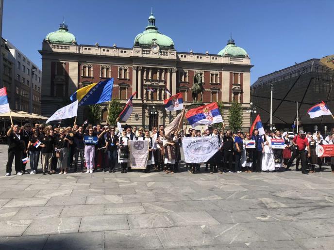 Učesnici navedene smotre u narodnim nošnjama prošetali su centralnim gradskim ulicama a posebnu pažnju građana izazvalo je veliko zajedničko narodno kolo kako na Trgu Republike tako i na platou Hrama Svetog Save.