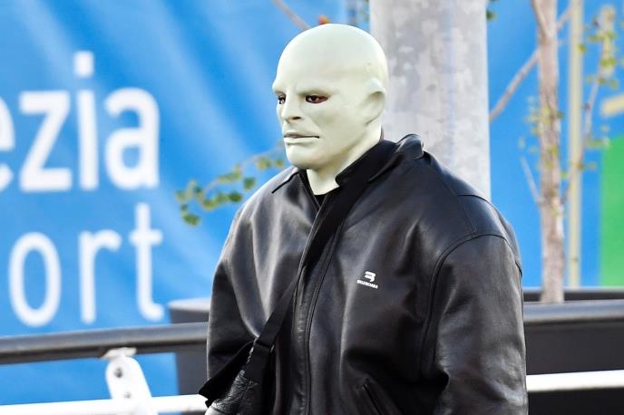 On je Kanje Vest, a prošetao je sa ovom maskom po veneciji dan pošto je bio na venčanju poznatog para. Bio je obučen u skroz crno i sve je bio isti poznati brend koji on i njegova, uskoro bivša žena ne skidaju.