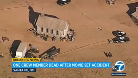 Na prvim snimcima iz helikoptera vidi se mesto tragedije - filmski set u pustinji Novog Meksika sa improvizovanom crkvom.