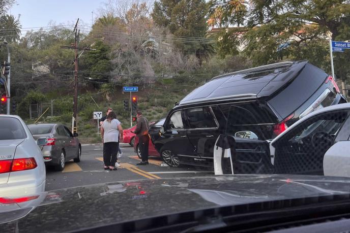 Na fotografijama s lica mesta vidi se veliko SUV vozilo na krovu najmanje dva automobila na raskrsnici u Brentvudu i Švarceneger koji stoji u blizini, vidno zabrinut, prenosi Dejli Mejl.