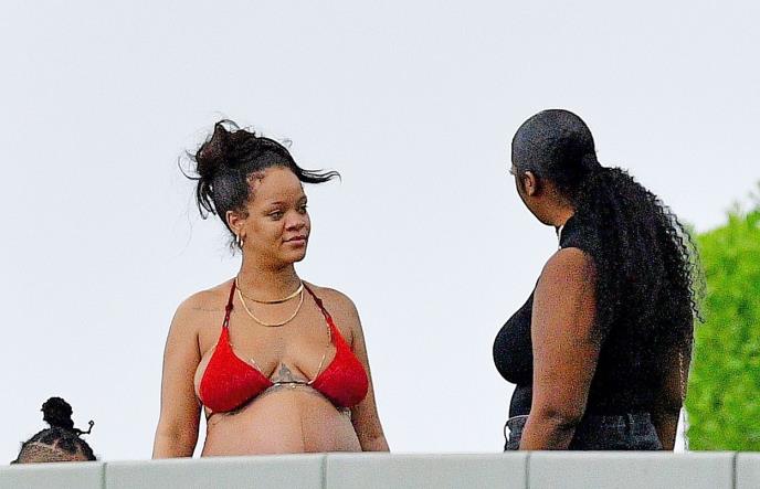 Rijana je u crvenom bikiniju uživala u društvu svoje majke i ostatka familije sa Barbadosa, a nakon njenih brojnih atraktivnih trudničkih izdanja, po prvi put imamo priliku da je vidimo u kupaćem kostimu "trudnu do zuba".