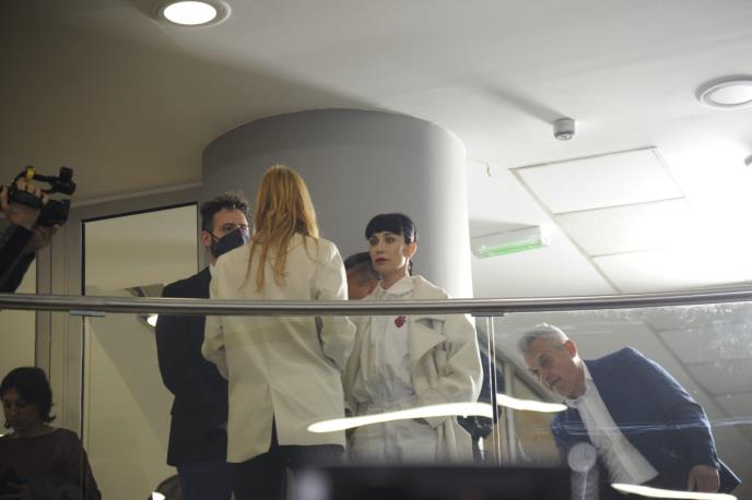 Brojne javne ličnosti došle su da isprate Konstraktu u Torino, a među njima je Leontina Vukomanović, s kojom su došli i članovi hora "Čarolija", koji su želeli da upoznaju umetnicu.