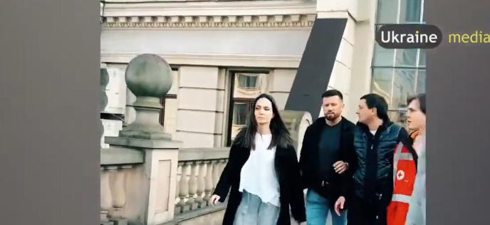 Glumicu su snimili kako je šetala gradom uz pratnju, kada su se začule sirene za vazdušnu uzbunu. Nedugo potom, ona je s pratnjom odvedena na sigurno, a ženski član pratnje je zamolio da snimanje prestane, piše Daily Mirror.
