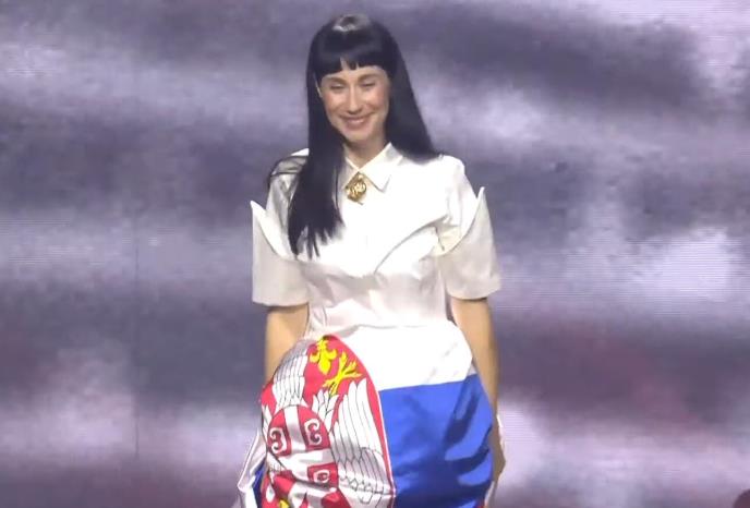 Konstrakta se večeras, na početku finala, pojavila na bini sa srpskom zastavom preko lica, te dobila veliki aplauz od publike.