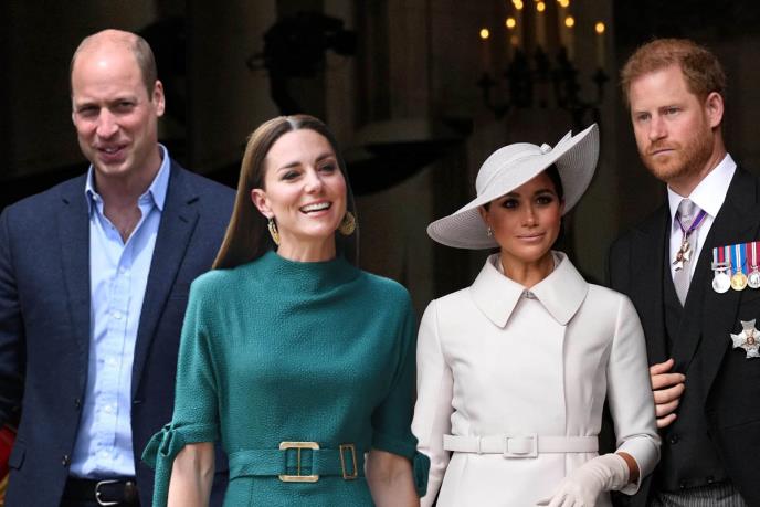 Mnoštvo je natpisa o Hariju i Megan i njihovom boravku u Velikoj Britaniji. Poznato je da su u Londonu bili samo dva dana, te da na neke događaje vezane za jubilej, poput velikog koncerta ispred Bakingemske palate, nisu bili pozvani. Sumnja se da su savetnici kraljice bili uplašeni da su Megan i Hari ozvučeni i da pokušavaju da snime sadržaj za svoj šou koji navodno snimaju za Netflix.