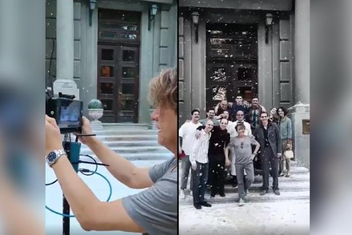 Bjelogrlić je okačio snimak na kome se vidi kako pada sneg dok on namešta kameru i pokušava da se slika sa timom koji je trenutno na snimanju. Naravno izgleda da je u pitanju lažni sneg koji su koristili za potrebe snimanja, ali sudeći prema komentarima to nije bilo mnogo bitno. Mnogi su oduševljeni prizorom ostavili želje da se i sami malo rashlade na snegu: