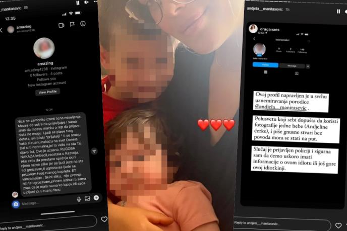 Nepoznata osoba iskoristila je fotografije petomesečne ćerke influenserke Anđele Manitašević i napravila Instagram profil pod nazivom "Lola ružna kći". Međutim, tu se nije zaustavila. Ubrzo zatim je uputila niz brutalnih i gnusnih uvreda na račun njene mezimice, prenosi Blic.