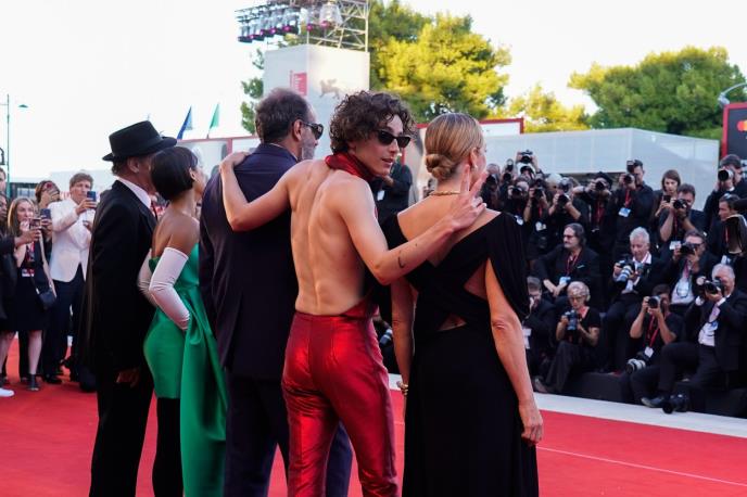 Glumac Timoti Šalame pobrinuo se da svi pogledi budu uprti u njega dok je prisustvovao premijeri svog novog filma "Bones and All" na Venecijanskom filmskom festivalu u petak.