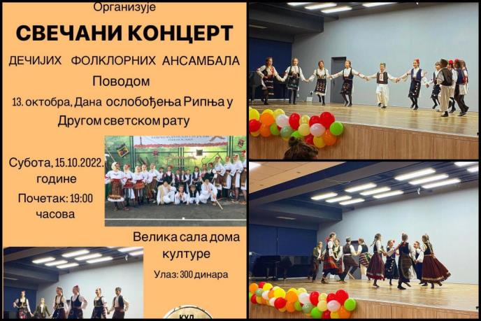 U subotu 15. oktobra deca iz ovog umetničkog društva održaće koncert, a povod je oslobođenje sela. Naime, 13.10.1944. godine oslobođen je Ripanj u Drugom svetskom ratu.