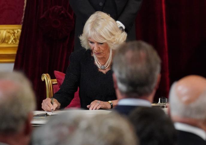 Kamila, kraljica supruga, fotografisana je sa stotinama plišanih medveda koji će biti donirani udruženju za brigu o deci Barnardo nakon što su ostavljeni ispred kraljičine palate kao počast nakon njene smrti.