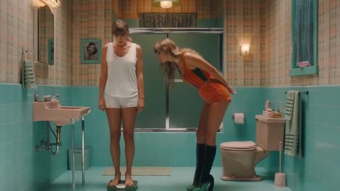 U originalnom spotu za pesmu "Anti-Hero" koju je režirala sama Tejlor Svift, 32-godišnja pevačica i tekstopisac zakorači na vagu koja pokazuje reč "debela", što govori o strahu junakinje od viška kilograma.
