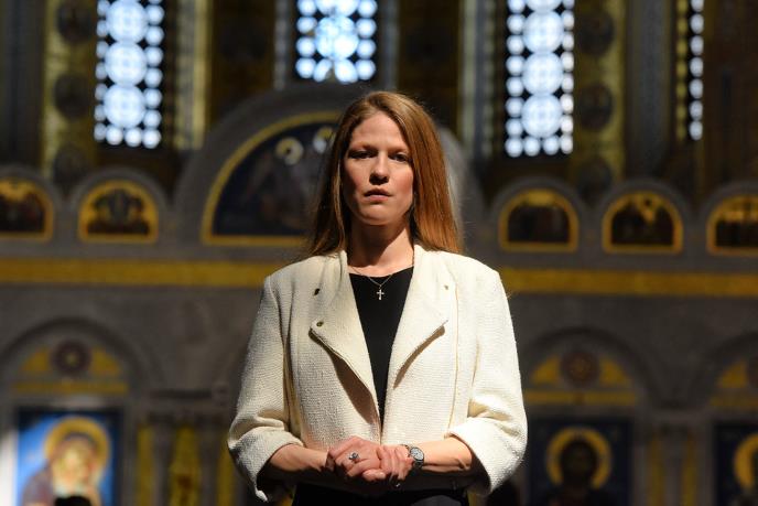 Princeza Danica je haljinu upotpunila diskretnom ogrlicom sa priveskom u obliku krstića, čizmicama od prevrnute kože i kožnom, kvalitetnom crnom tašnom, kao i moderan crni kaput.