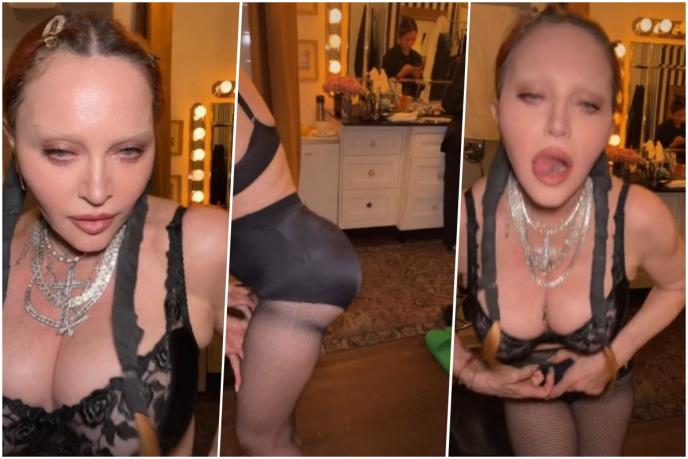 Na najnovijem video snimku, 64-godišnja kraljica popa nosila je crni čipkani grudnjak, crni donji veš visokog struka i mrežaste hulahopke i plesala uz pesmu "L$D" od Luclovera.