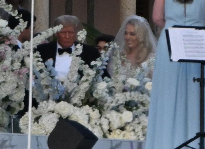 Kuma je bila mladina polusestra Ivanka Tramp, Donaldova miljenica, koja je po mnogima zasenila i samu Tifani koja je blistala u raskošnoj venčanici dugih rukava princeza kroja sa potpisom Eli Saba. Marla Mejpls, Tifanina majka se pojavila u haljini sa jednom bratelom boje lavande od istog dizajnera. Tramp je bio u smokingu, čas vidno raspoložen čas smrknutog lica.