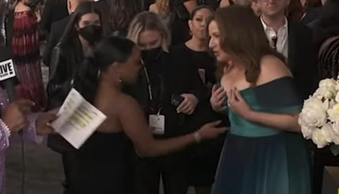 Kvinta, koja je ujedno osvojila i nagradu za najbolju glumicu zahvaljujući ulozi u sitkomu "Abbott Elementary", pozdravila je Anu zagrljajem pre nego što je iskazala interesovanje za njen dekolte. Kvinta je skrenula pogled na njene grudi, što je navelo Anu da se takođe raspriča o svojoj haljini, odnosno, atributima. Obe su zatim prasnule u smeh dok je Kvinta nastavljala rukama da "popravlja" svoje grudi.