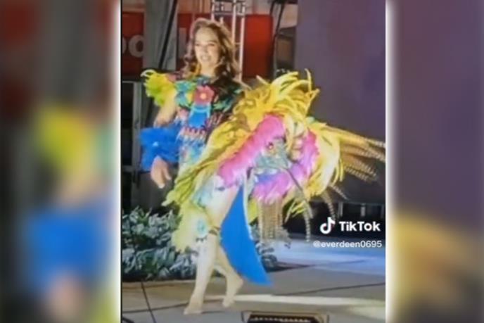 U gradu Sahuajo devojka po imenu Andrea Granados Viktor (22) šetala binom kako bi pokazala svoj šareni, pernati kostim i na kraju prišla mikrofonu. Problem je bio u tome što je bila bosa.
