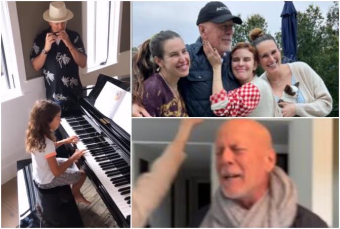 Demi Mur je objavila snimak na kome Brus pozira s njihovim ćerkama Rumer, Talulom i Skaut, a pokazala je i deliće proslave svog bivšeg supruga. Naravno, prisutne su bile i njegova supruga Ema i njihove dve ćerke Evelin i Mejbel. Može se videti i koliko je glumac ostario poslednjih meseci.