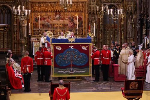 Zatim su se uputili prema Vestminsterskoj opatiji, gde se održala ceremonija. Kralj je u nekim delovima ukinuo tradiciju, ali nekih se strogo držao. Jedan od njih bio je deo tokom pomazanja, koje niko osim sveštenika i nadbiskupa ne sme da vidi.