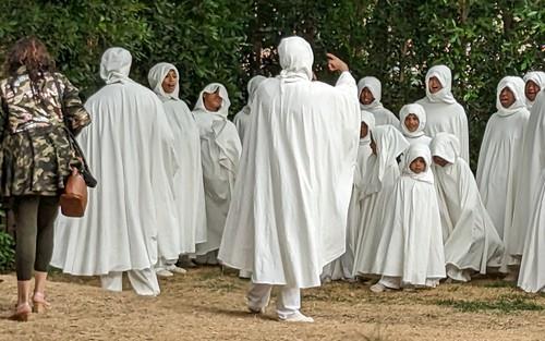 "Svi članovi zbora nose uniformu. Obično odevni predmet koji je kombinacija majice kratkih rukava i zborskog ogrtača, plus Yeezy patike i pantalone. Odeću i obuću dobijaju besplatno nekoliko dana pre ili na dan službe. Odevna kombinacija je obično bela, ali Kanjeove su crne, bež ili grafitne nijanse", ispričao je jedan anonimni izvor.