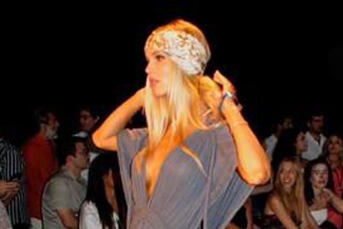Džoj je očito želela da isprati samu temu revije, pa je izabrala model haljine za plažu, a uklopila ju je i sa još jednim praktičnim aksesoarom za odlazak na kupanje i sunčanje - široku traku za kosu sa upečatljivim printom. Autfit je zaokružila srebrnim sandalama sa platformom, koje svakako nisu bile najsrećnije rešenje.